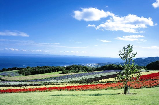 あわじ花さじき②(赤いサルビアとブルーサルビアの色鮮やかなストライプ模様)