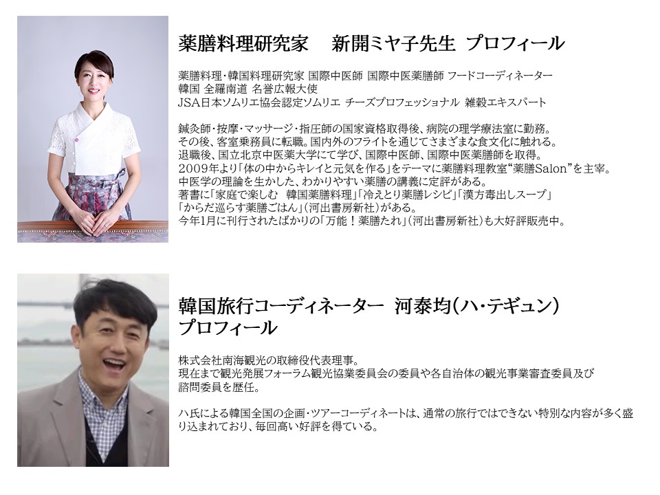 新開ミヤ子先生と河泰均(ハ・テギュン)コラボツアー!韓流美膳の旅!